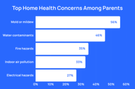 When asked to identify the home health issues that concern them most, 56% of parents selected mold or mildew, making it the most commonly cited risk in the survey.